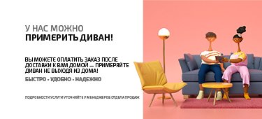 Заказал диван через интернет. Ответили быстро и отправили видео и фото дивана. Заказ запустили в производство без предоплаты. Оплата при получении. Две недели на производство и меньше недели на доставку в Махачкалу. Хорошо упаковано. Доставили, занесли и очень аккуратно собрали вежливые ребята, спасибо и им огромное.