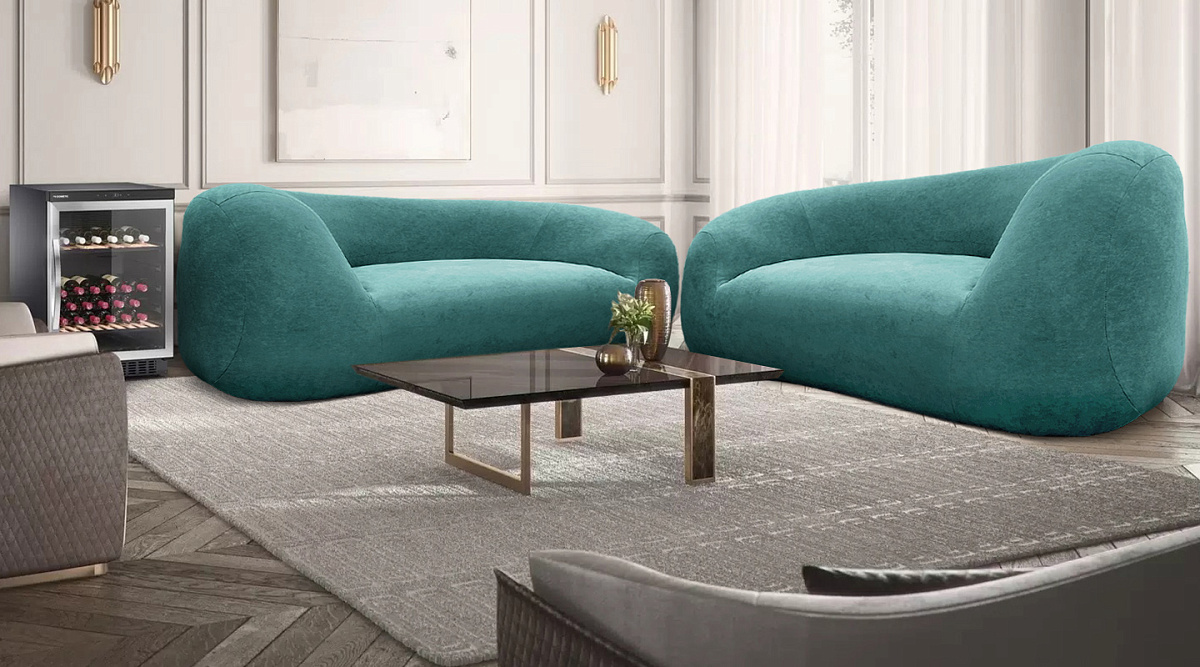 Прямой диван Вирджиния Морская волна велюр