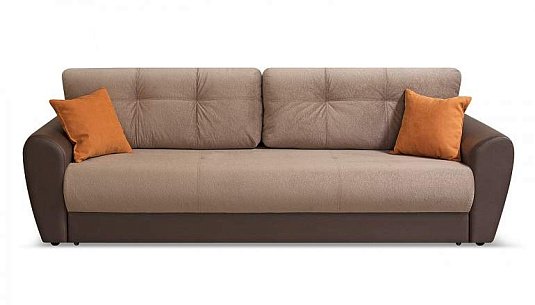 Изделие лишено хрупких, ненадежных элементов, поэтому раскладывать его можно так часто, как это необходимо. Обшивка может быть выполнена в нескольких вариантах цветовой гаммы и фактуры ткани. По вашему желанию, это может быть комбинация мягкого велюра с экокожей или практичной рогожкой. Все используемые при изготовлении дивана материалы - экологичные и безопасные.
